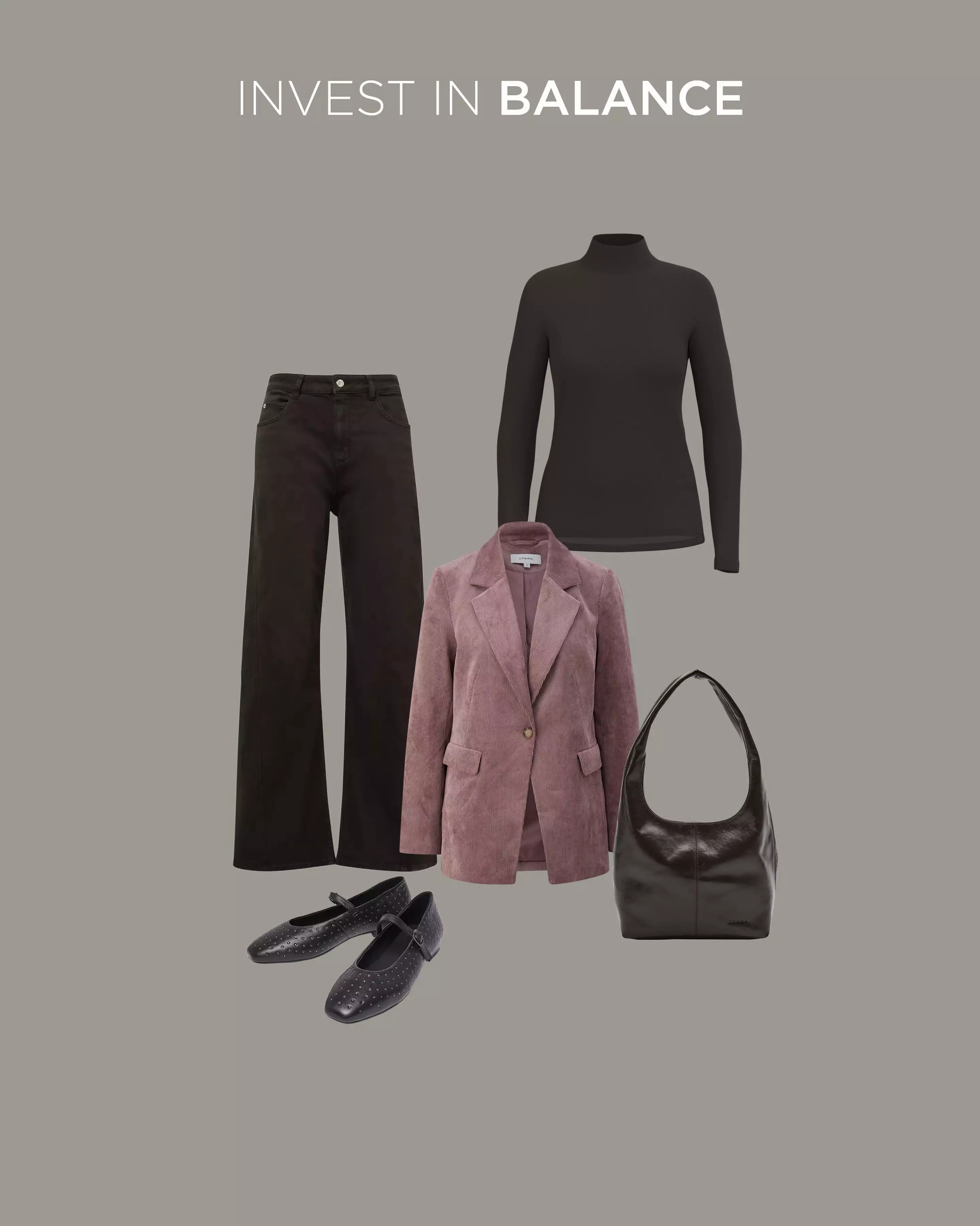 Von Office zu Dinner, von Meeting zu After Work – Balance entsteht durch Looks, die sich mühelos anpassen. Tailored Blazer und Wide-Leg Pants geben Struktur, fließende Blusen bringen Ease. Mit Tasche und Flats wird der Übergang leicht – ein Look für Ruhe und Klarheit zu jeder Stunde des Tages.